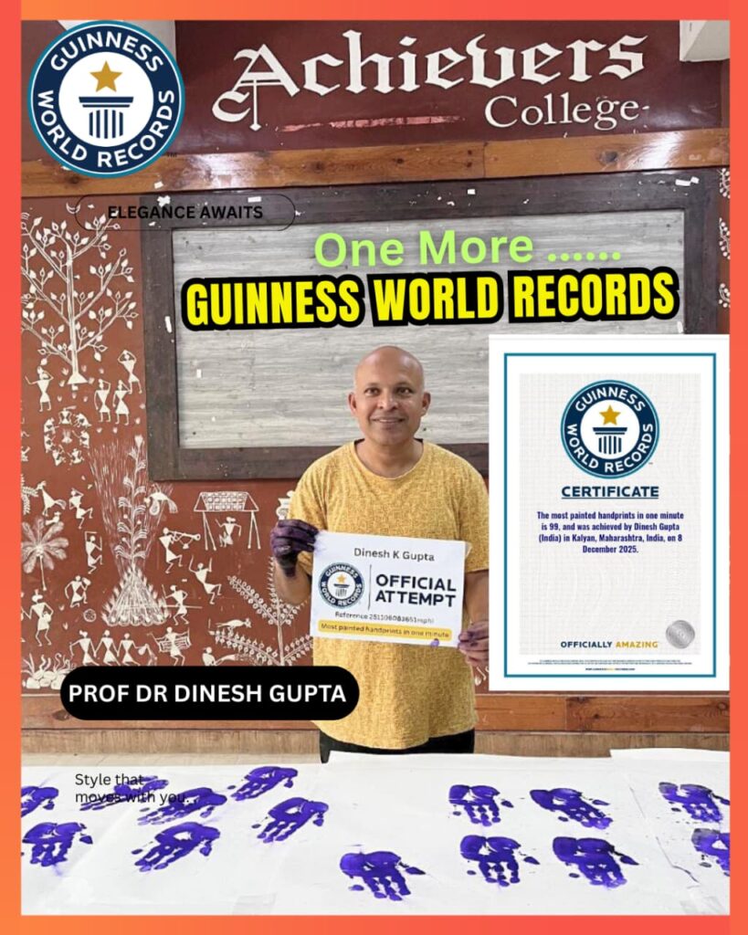 Dinesh Gupta Anandshree Creates History with Another Prestigious Guinness World Record, draws 99 Illustrated Handprints in One Minute and brings Global Recognition to Kalyan City.